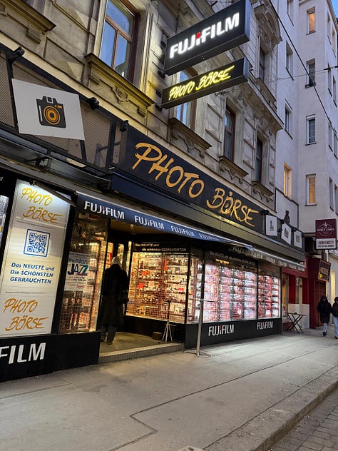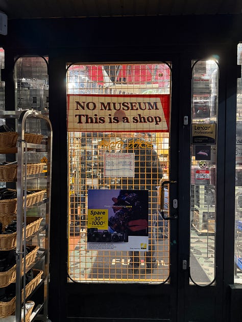 Jak centralne, teoretycznie najdroższe dzielnice (przypomniał mi się Wiedeń z gry Eurobiznes), zdołały zachować tak nieskomercjalizowaną strukturę? Gdy na witrynie niezależnego sklepu z vintage’owym sprzętem fotograficznym przeczytałem: „nie jesteśmy muzeum, to sklep” – zrozumiałem, że nie tylko ja zadaję sobie pytanie: jak wygrywacie licytację na czynsze z globalnymi gigantami?